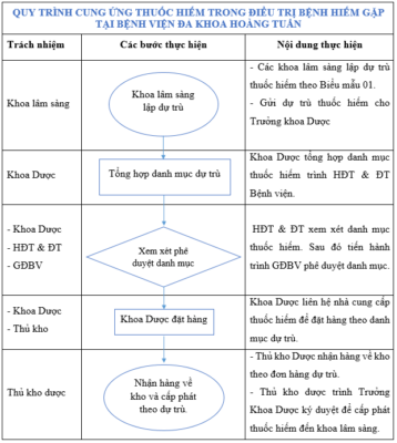 QUY TRÌNH CUNG ỨNG THUỐC HIẾM TRONG ĐIỀU TRỊ BỆNH HIẾM GẶP TẠI BỆNH VIỆN ĐA KHOA HOÀNG TUẤN