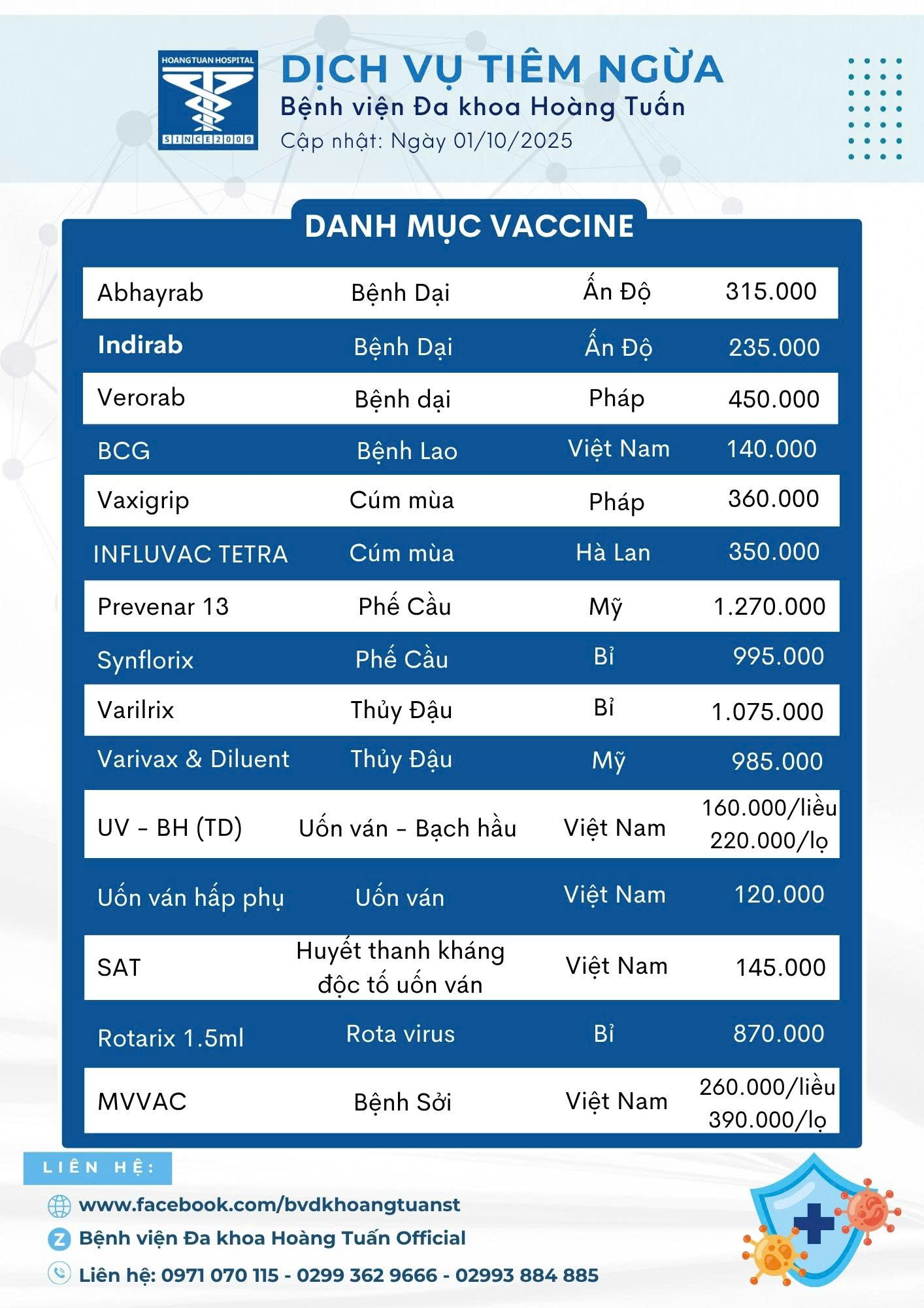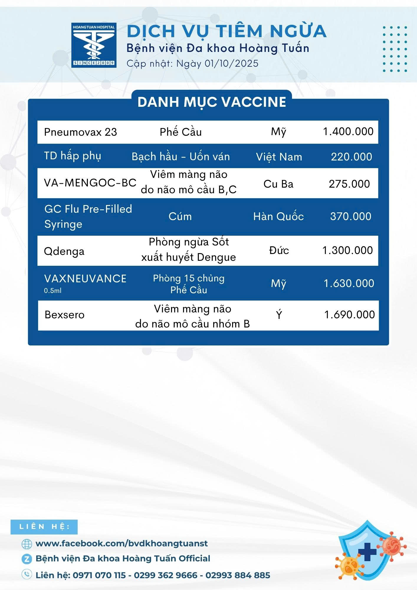 Bảng Giá Tiêm Chủng Bệnh Viện Đa Khoa Hoàng Tuấn