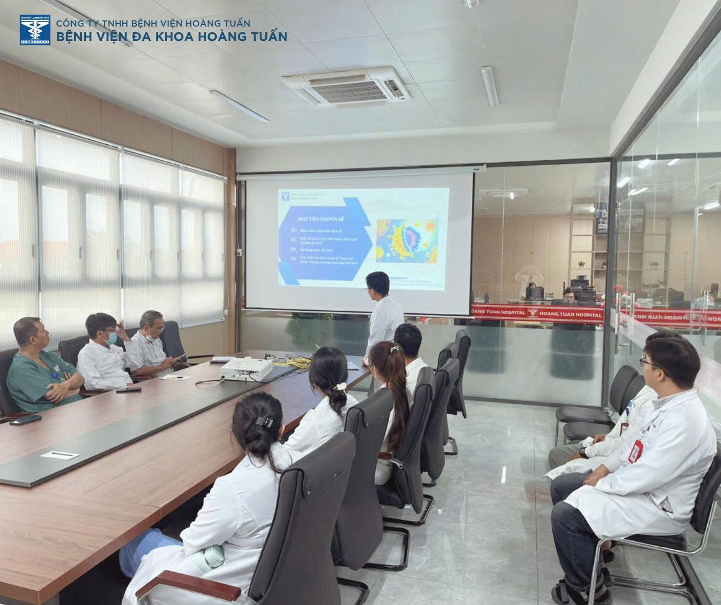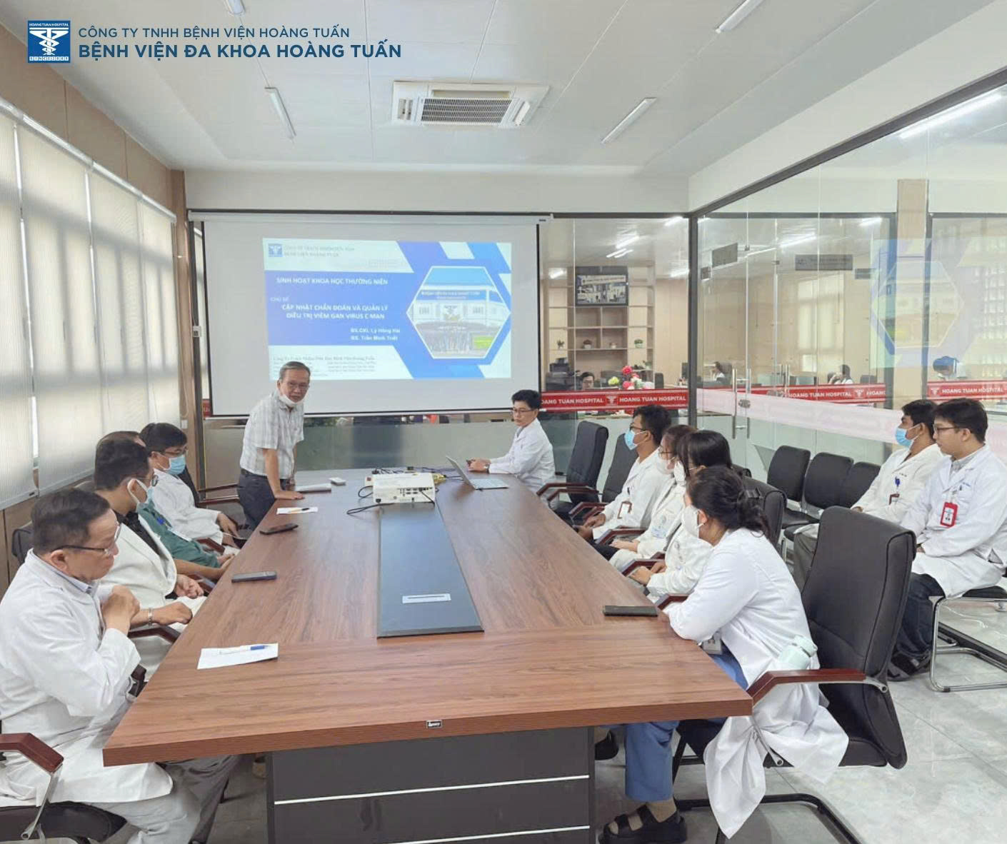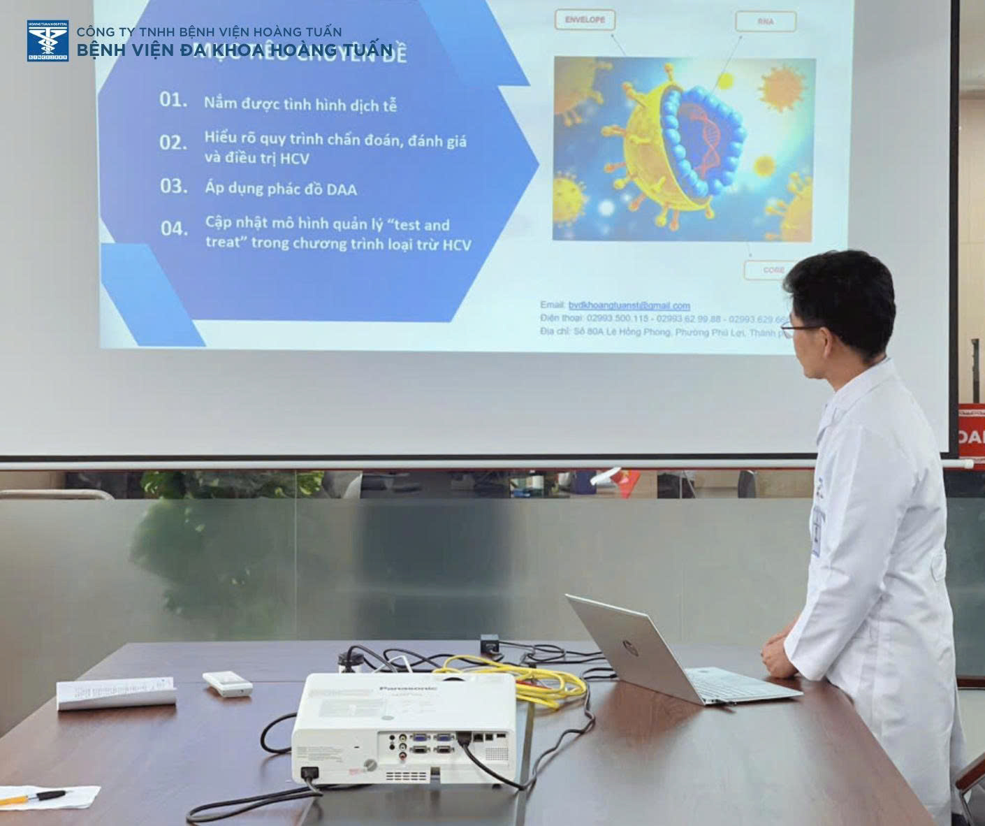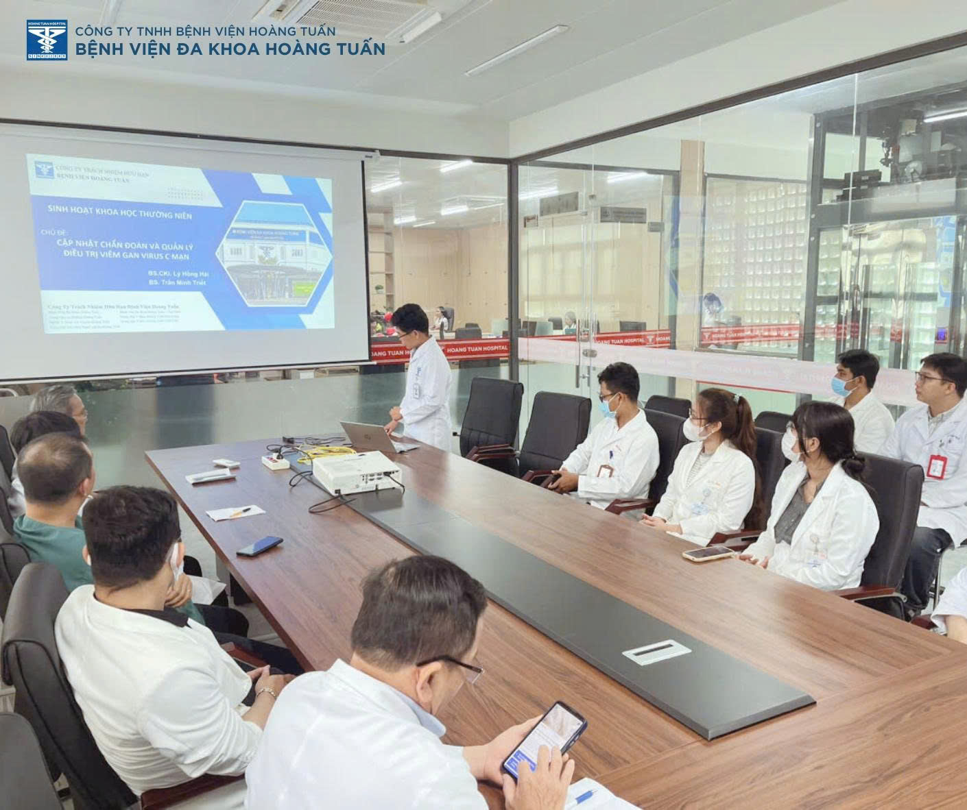 Vừa qua ngày 13 tháng 11 năm 2025, Bệnh viện Đa khoa Hoàng Tuấn tổ chức sinh hoạt chuyên đề “Cập nhật chẩn đoán và quản lý điều trị viêm gan virus C mạn” do BSCKI. Lý Hồng Hải – Trưởng khoa Nội – Bệnh viện Đa khoa Hoàng Tuấn trình bày và BS. Trần Minh Triết (hỗ trợ biên soạn). Buổi sinh hoạt khoa học vinh dự có sự tham gia của BSCKI. Nguyễn Tuấn Kiệt – Phó giám đốc Bệnh viện Đa khoa Hoàng Tuấn cùng các bác sĩ tại các khoa phòng tham gia cập nhật kiến thức.