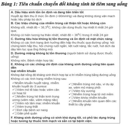 [CẢNH GIÁC DƯỢC] CHUYỂN ĐỔI KHÁNG SINH TỪ ĐƯỜNG TIÊM SANG ĐƯỜNG UỐNG TẠI BỆNH VIỆN
