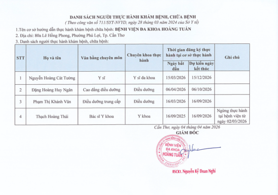 DANH SÁCH NGƯỜI THỰC HÀNH KHÁM, CHỮA BỆNH TẠI BỆNH VIỆN ĐA KHOA HOÀNG TUẤN THÁNG 2 NĂM 2026