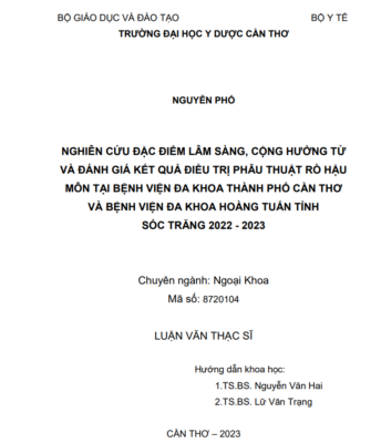 [Luận Văn] Nghiên cứu đặc điểm lâm sàng, công hưởng từ và đánh giá kết quả điều trị phẫu thuật rò hậu môn tại Bệnh viện Đa khoa Thành Phố Cần Thơ và Bệnh viện Đa khoa Hoàng Tuấn Tỉnh Sóc Trăng 2022 – 2023