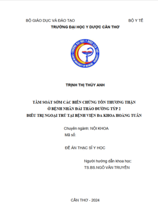 [Đề Án] Tầm soát sớm các biến chứng tổn thương thận ở bệnh nhân đái tháo đường typ 2 điều trị ngoại trú tại Bệnh viện Đa khoa Hoàng Tuấn
