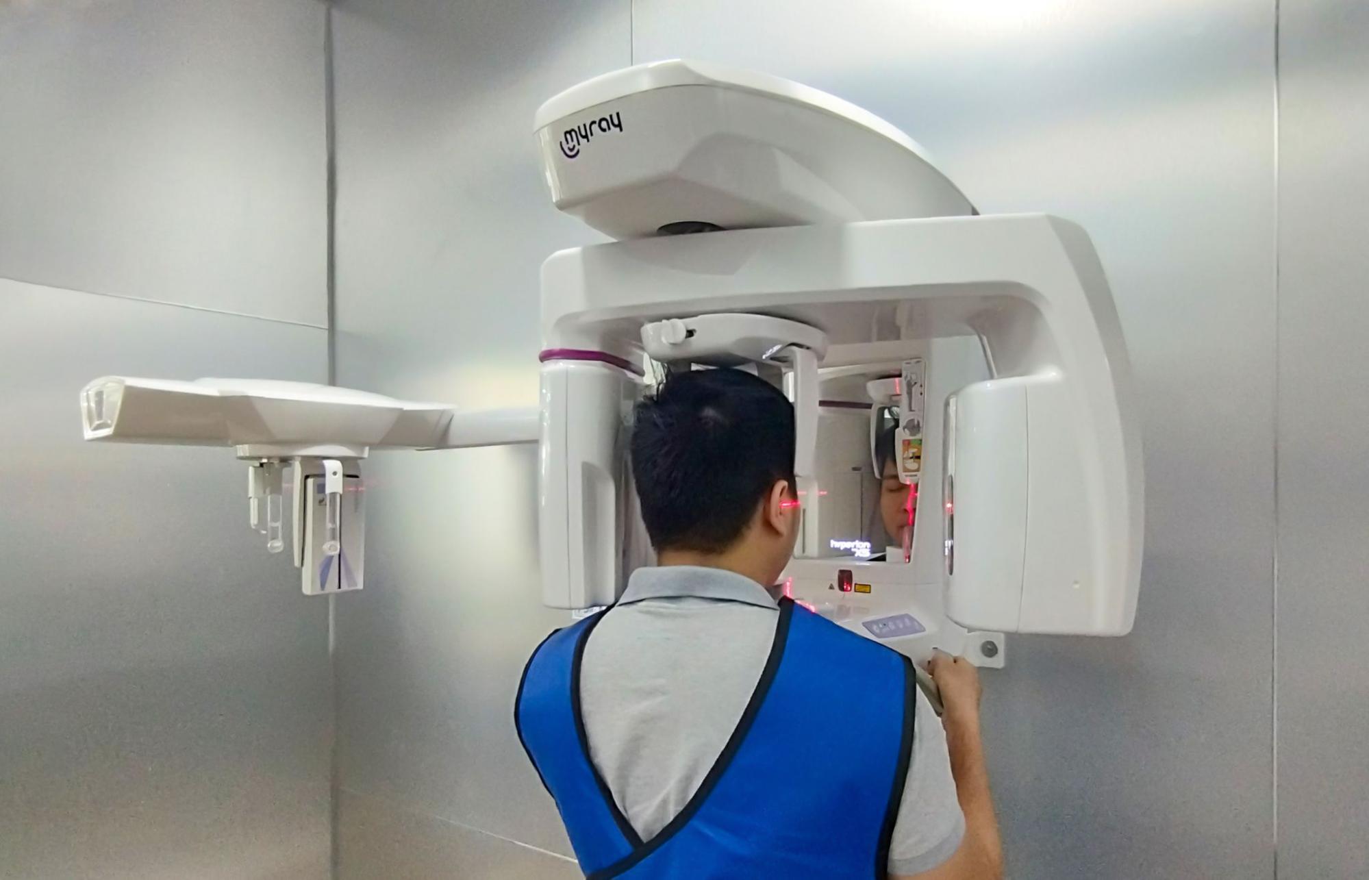 Khách hàng đang thực hiện chụp Cone Beam CT tại Bệnh viện Đa khoa Hoàng Tuấn