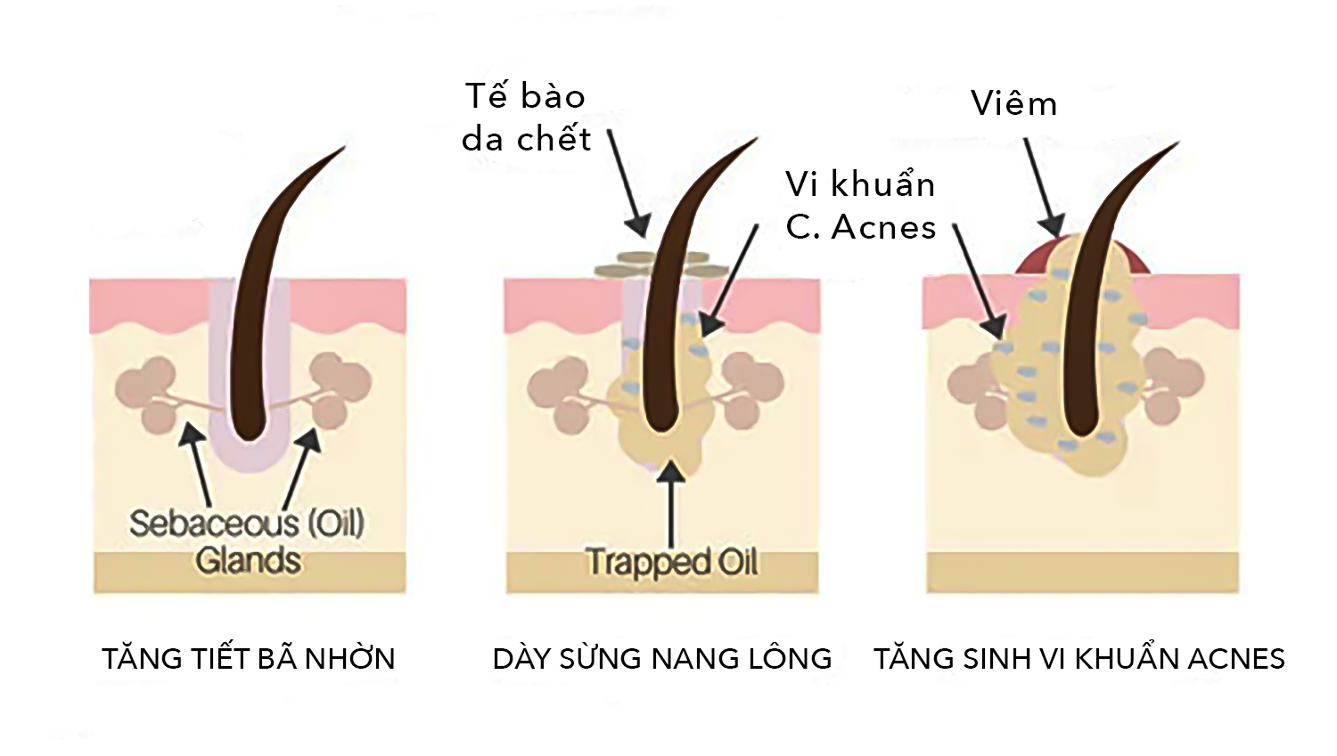 - Vi khuẩn C. acnes và phản ứng viêm.