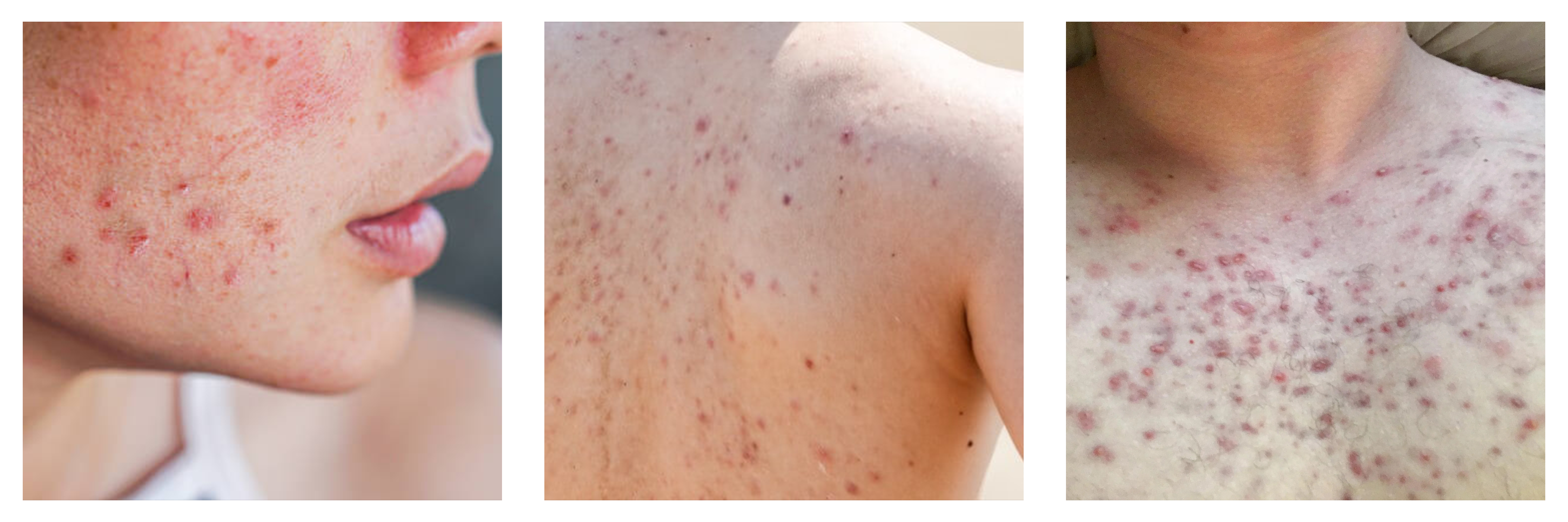 Điều trị mụn trứng cá trong những năm qua đã có nhiều tiến bộ đáng kể. Tuy nhiên còn một số bệnh nhân tự ý dùng thuốc, kem không rõ nguồn gốc, gây ra những biến chứng nghiêm trọng, gây kéo dài thời gian điều trị, tốn kém chi phí và để lại sẹo xấu. Vấn đề tái phát mụn trứng cá sau điều trị vẫn còn diễn ra nhiều do bệnh nhân không tuân thủ đúng điều trị, ngưng thuốc sớm và không áp dụng điều trị duy trì. Biểu hiện của mụn trứng cá. Mụn trứng cá thường hay gặp nhất là các mụn nhân mở hoặc đóng, sẩn, mụn mủ, cục nang ở vị trí nang lông,khu trú ở vùng da tiết nhiều dầu như mặt, lưng, ngực.