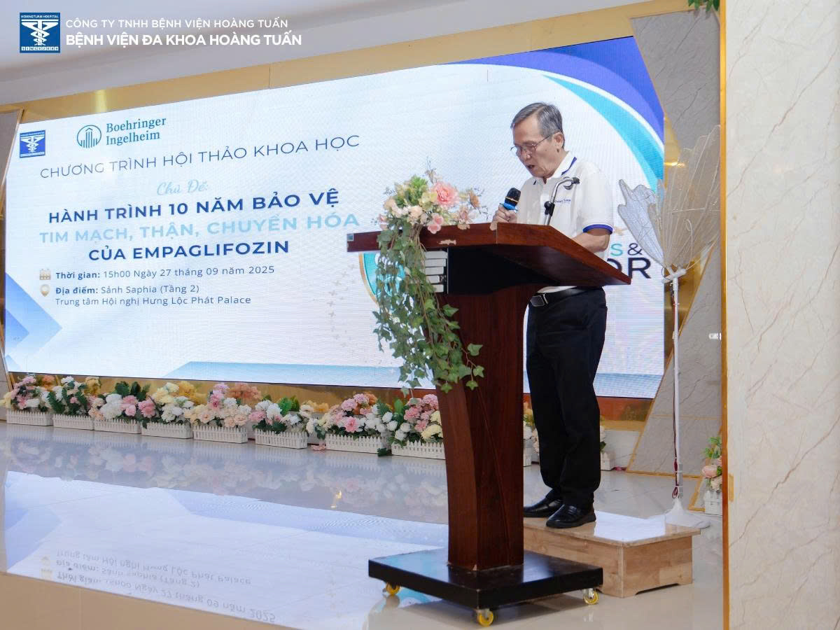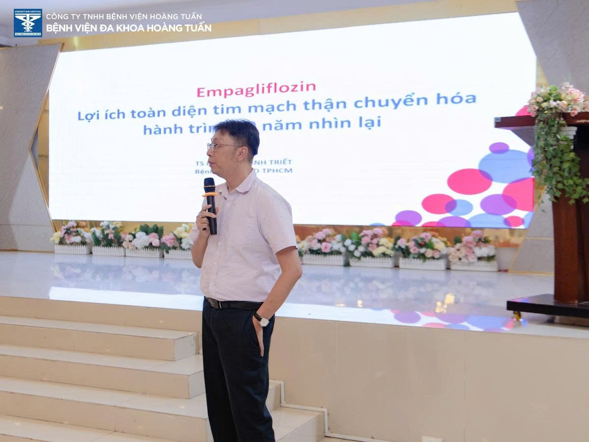 🌟 Buổi hội thảo hân hạnh được đón tiếp sự tham gia đặc biệt của TS.BS. Trần Minh Triết (Phó Trưởng khoa Khám bệnh – Bệnh viện Đại học Y Dược TP.HCM) cùng nhiều bác sĩ, nhân viên y tế trong lĩnh vực tim mạch – thận – chuyển hóa đang làm việc tại các cơ sở thuộc Công ty TNHH Bệnh viện Hoàng Tuấn. Hội thảo nhấn mạnh việc nhìn lại chặng đường 10 năm phát triển của Empagliflozin, từ một thuốc hạ đường huyết đến vai trò bảo vệ toàn diện tim mạch, thận và chuyển hóa.